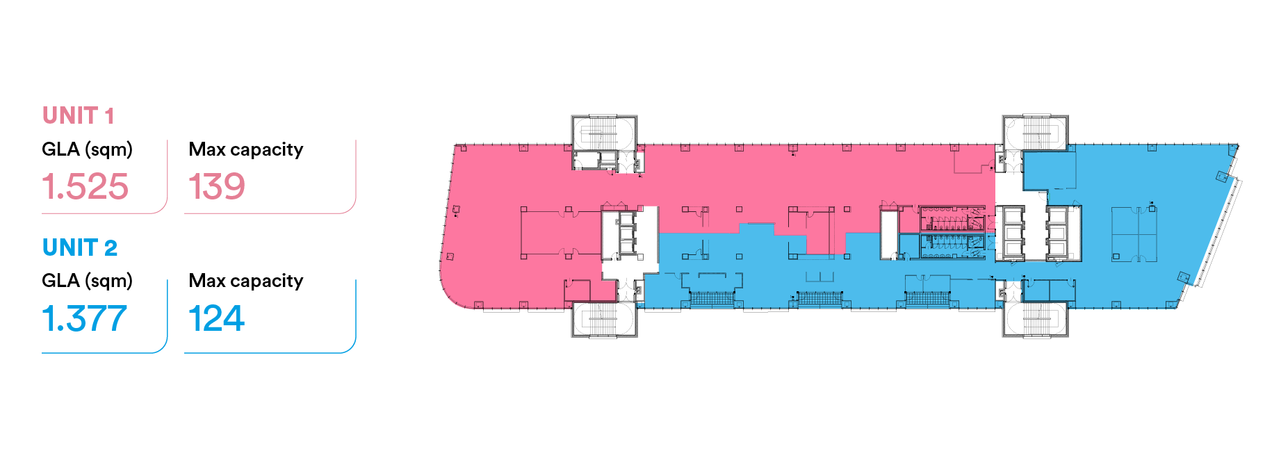Scopri gli spazi disponibili in Spark 3, affittabili nella loro superficie totale o divisa in due.